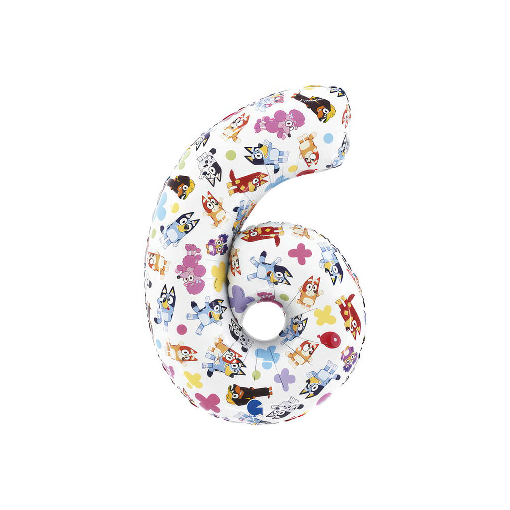 Ge kalaset en extra festlig touch med en folieballong i form av en siffra dekorerad med motiv från Bluey. En perfekt ballong för ett Bluey tema kalas. Kan fyllas med vanlig luft eller helium.