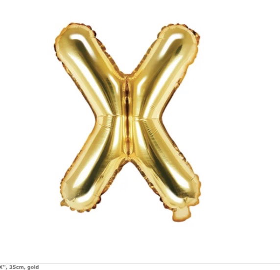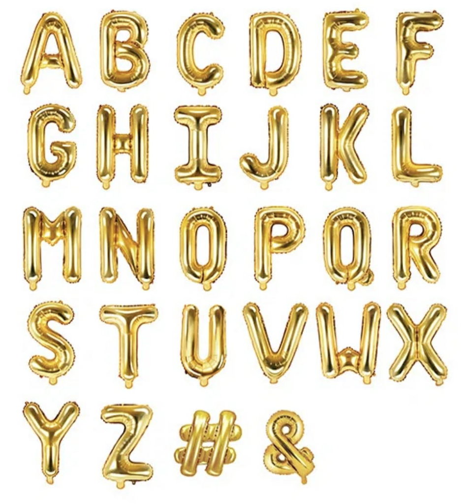 Bokstavsballonger ca 35 cm stora i guld metallic. Med dessa ballonger kan du skapa helt egna meddelanden och texter, välj ut vilka bokstäver du behöver, köps en och en. Ballongerna fylls med luft, Varje ballong har fästen så du enkelt kan hänga upp dom.