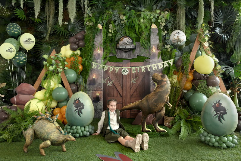 Låt äventyret börja med en ballong från Jurassic World som lyfter kalaset till nästa nivå.