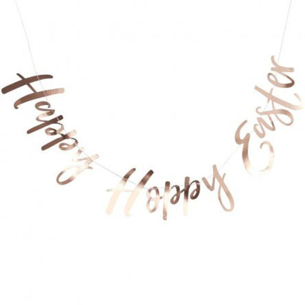 Girlang i guld med texten " Happy Hoppy Easter ". Perfekt som dekoration på väggen