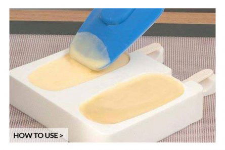 Uppsättningen innehåller två formar för 4 glassar, träpinnar och en receptbroschyr så att du enkelt kan börja direkt!