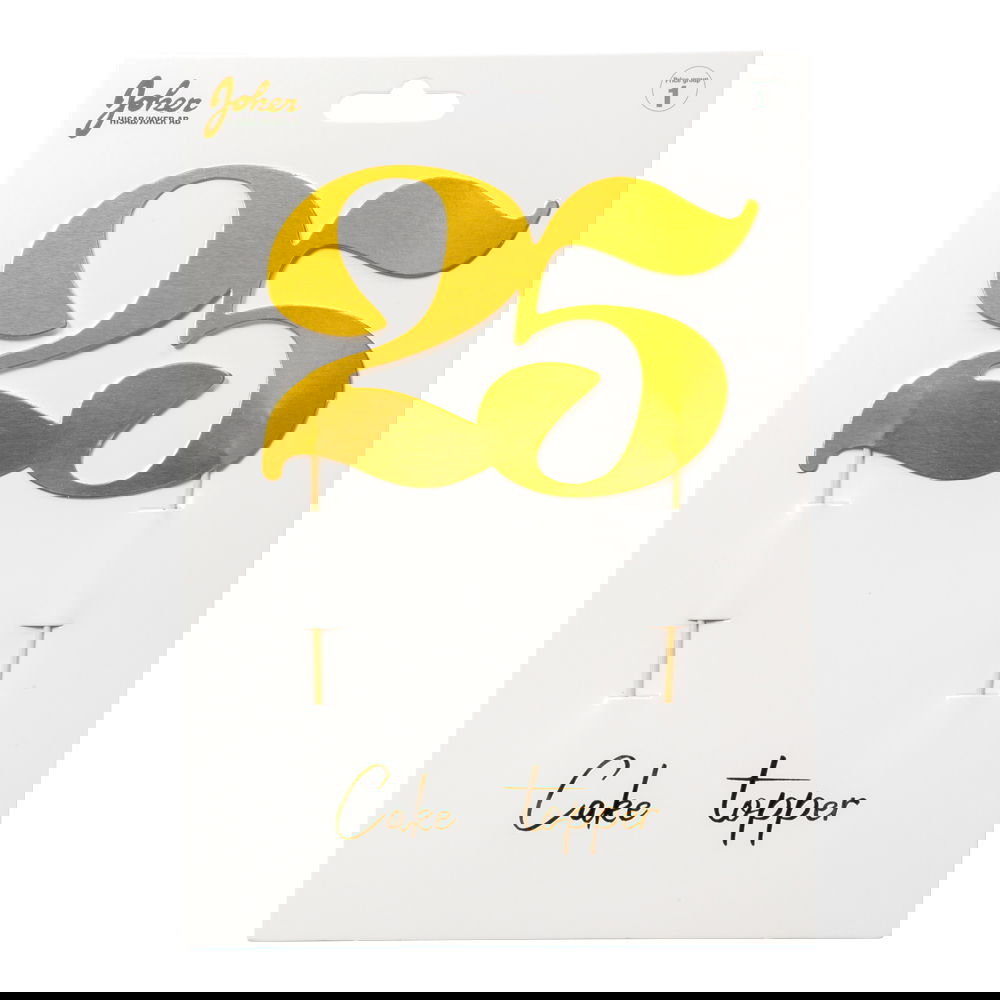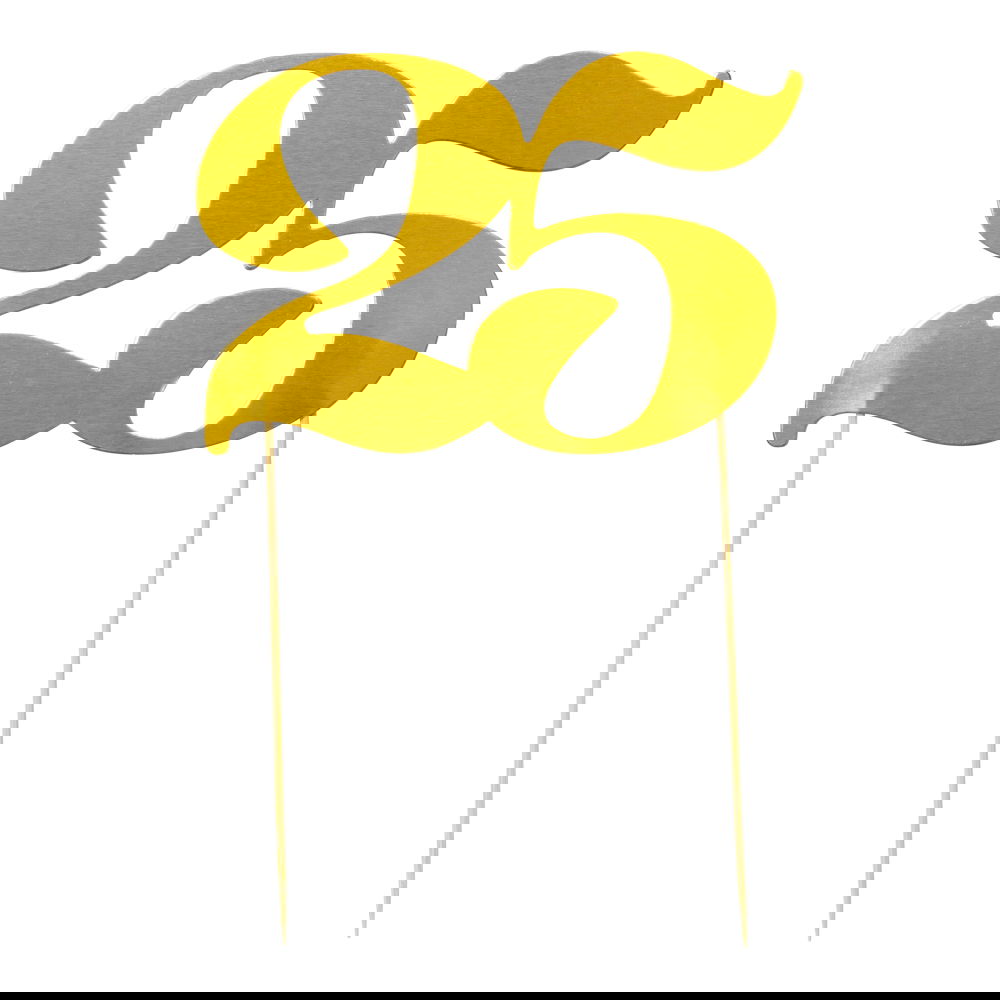 Tårtdekoration Siffra 25. Denna guldfärgade tårtdekoration är perfekt att dekorera tårtan med för att göra det lite extra festligt för juibleet eller födelsedagskalaset till någon som fyller 25år.