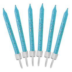 12-pack ljusblåa tårtljus med glitter.